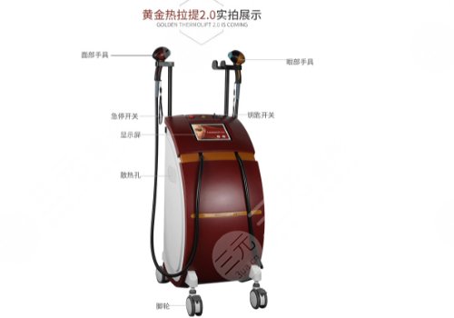 黄金热拉提的机器就像是名字,有一条金黄色的束腰,而且下面也会有一个金黄色的长条形状。而热拉提plus的机器是全身红色的,中间只有银色的plus字样,而两个仪器的治疗头在外观上也是不一样。热拉提plus的治疗头是白色的,一个是扁圆形,而另一个是长圆柱形,黄金热拉提的治疗头主要以黑色为主,两个治疗头分别是黄色和红色。